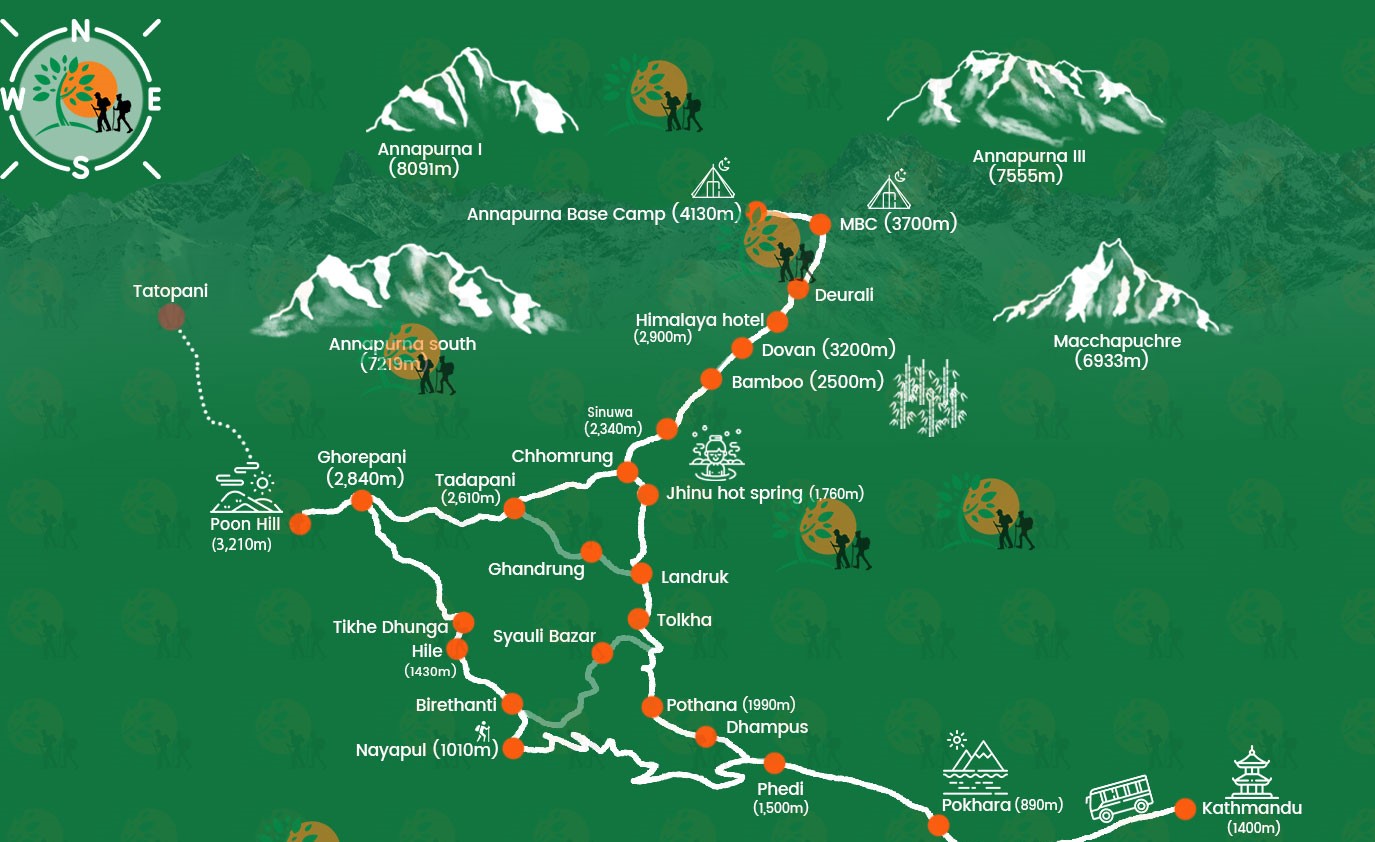 • Maximum Altitude: 3210m (Poon Hill)